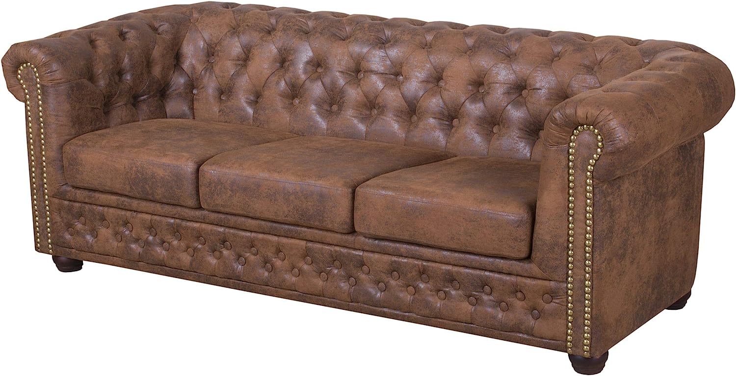 Edles Chesterfield Sofa 3 Sitzer in Mikrofaser Vintage braun
